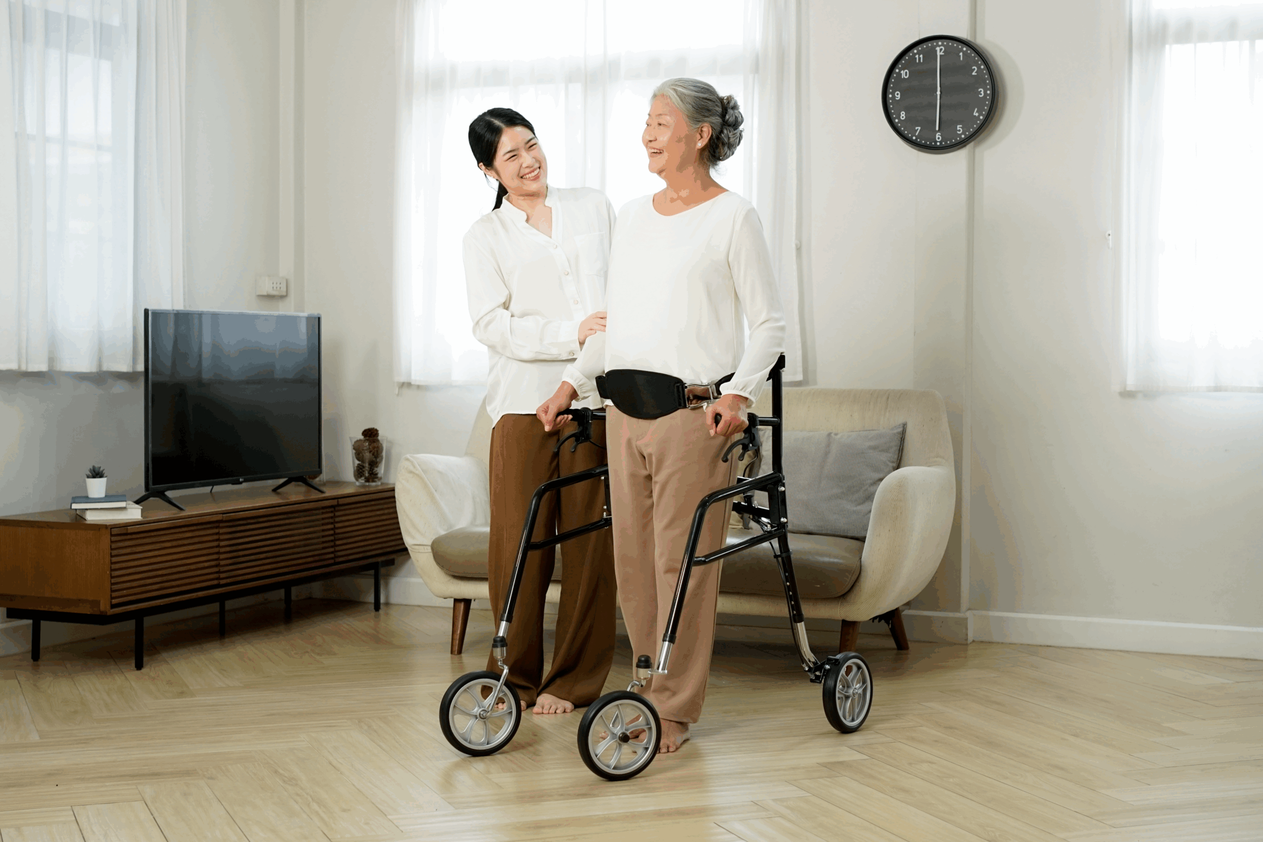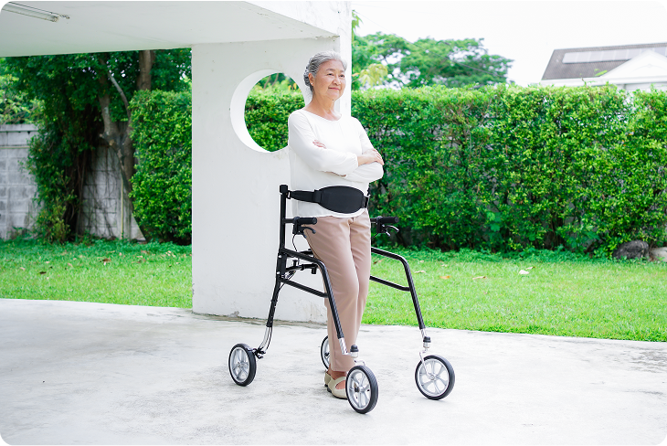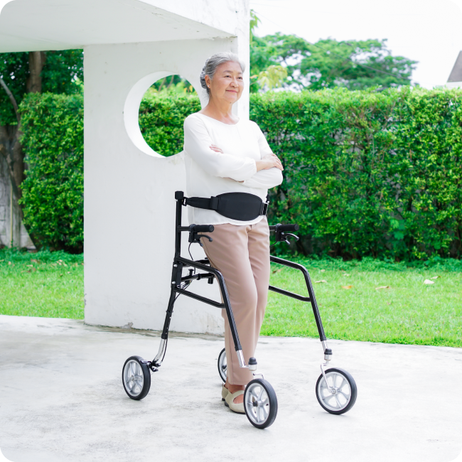 หากผู้ป่วยไม่มีแรงแนะนำว่าควรใช้สายรัดพยุงตัวขณะใช้งาน
