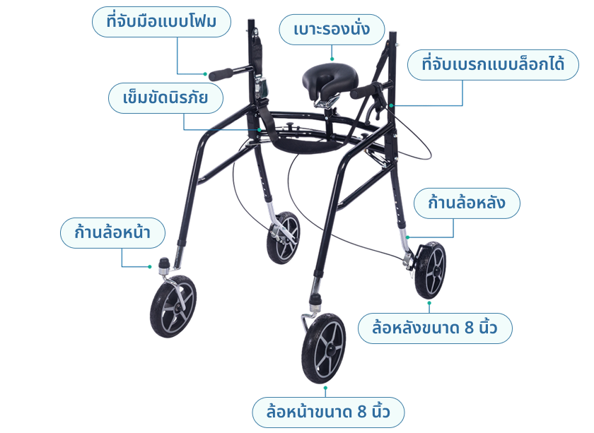 2.2 ผู้ป่วยควรจะสามารถจับที่ด้ามจับประคองตัวที่รถเข็นได้ เพื่อช่วยไม่ให้ผู้ป่วยเซไปด้านใดด้านนึง