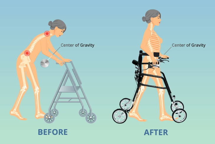นวัตกรรมรถช่วยเดินผู้สูงอายุที่ออกแบบมาเพื่อความปลอดภัยสูงสุด ช่วยพยุงและป้องกันการล้มอย่างมีประสิทธิภาพ ไม่เหมือนrollator แบบเก่าซึ่งต้องก้มจับด้ามจับตลอดเวลา เหมาะสำหรับผู้สูงอายุ ผู้ป่วยพักฟื้น หรือผู้ที่มีปัญหาด้านการเดิน โครงสร้างแข็งแรง พร้อมเข็มขัดพยุงตัวและระบบเบรกที่ไว้ใจได้ ให้คุณและคนที่คุณรักกลับมาเคลื่อนไหวได้อย่างอิสระและมั่นใจอีกครั้ง