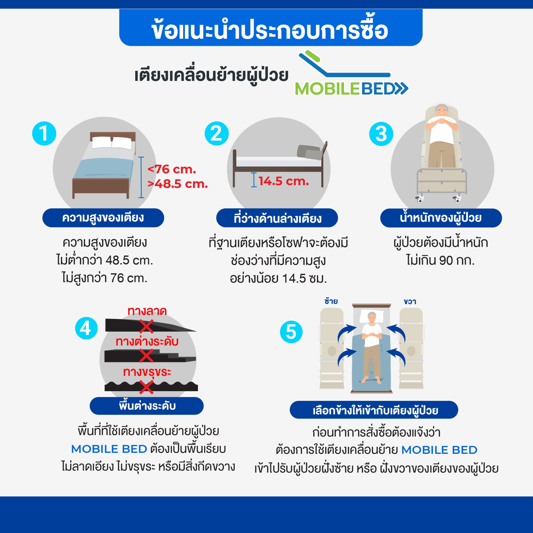 ในหลากหลายสถานการณ์ ลูกค้าจึงต้องทำความเข้าใจในระบบการทำงาน ข้อจำกัดในการใช้งานของอุปกรณ์เคลื่อนย้ายผู้ป่วย